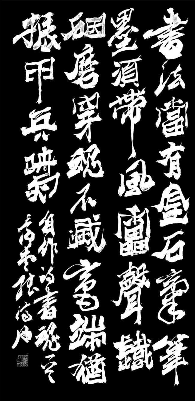 爨八体在坚守古韵的同时,积极融入现代审美元素,使作品更符合当代观众的审美趣味。一方面,强化字体的“灵动性”——引入行书“牵丝映带”的笔法,通过细线条连接相邻笔画,如“行”“书”等字,增强笔画的连贯性与节奏感,契合现代审美对“流畅性”的追求;借鉴草书“简省夸张”的结构设计,简化复杂笔画,如“食”“为”等字,突出视觉焦点,符合现代审美对“简洁性”的需求。另一方面,丰富字体的“实验性”——运用飞白书“枯笔留白”的技法,在主笔中段营造虚实对比,如“长”“横”等字,增强字体的层次感与透气性;吸收漆书“粗重方整”的特质,加粗主笔线条,如“一”“捺”等字,强化视觉冲击力,契合现代艺术对“个性化”的探索。这种现代表达使爨八体既能进入博物馆、美术馆等传统艺术场域,也能适配现代设计、公共艺术等新兴领域,如用于书籍装帧、城市雕塑等,扩大了书法艺术的受众群体与应用场景。