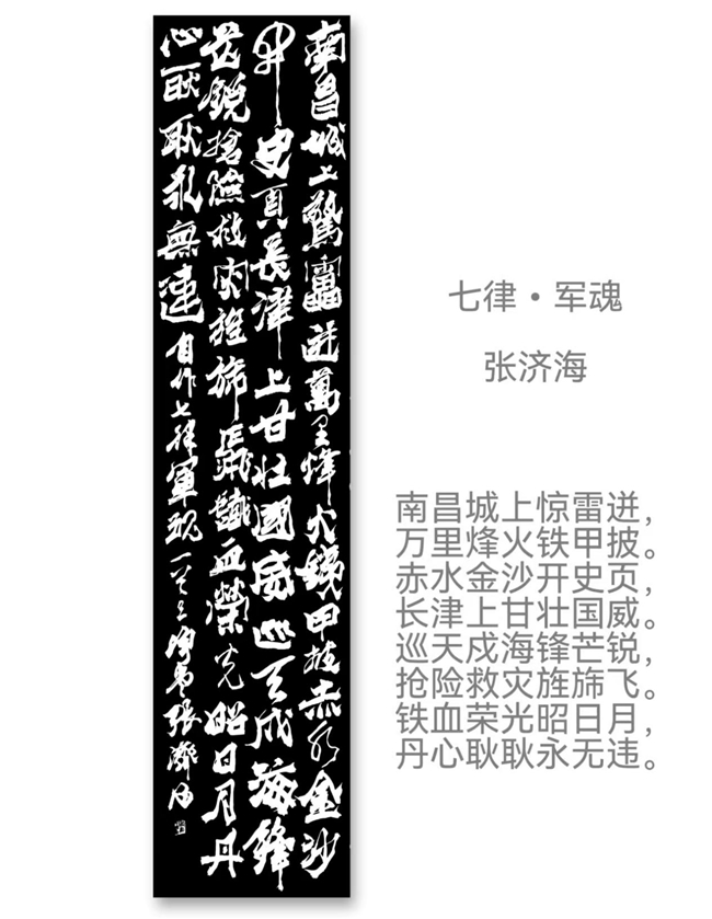 张济海15岁因书画特长被特招入伍,开启40多年军旅生涯,其坚毅性格与雷厉风行作风融入书法。他独创“爨八体”,将多种书体特色融为一体,被收入新版《中国书法大字典》而永载史册。代表作《厚德载物》等,在各大拍卖高价拍出,还被镌刻于八达岭长城居庸关。著有《书法教程》《心灵轨迹》《书法有道》《书法兵法论》《爨八体自述》《能量书法论纲》《中国高等艺术院校名师学范本》《书法大道365》《张济海书法作品集》等。