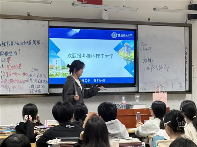 宣讲团队成员来自不同专业,有着丰富多元的大学生活体验。在宣讲中,他们以自身经历为切入点,全面且深入地介绍桂林理工大学,高三学子对大学生活也有了更直观的感受。